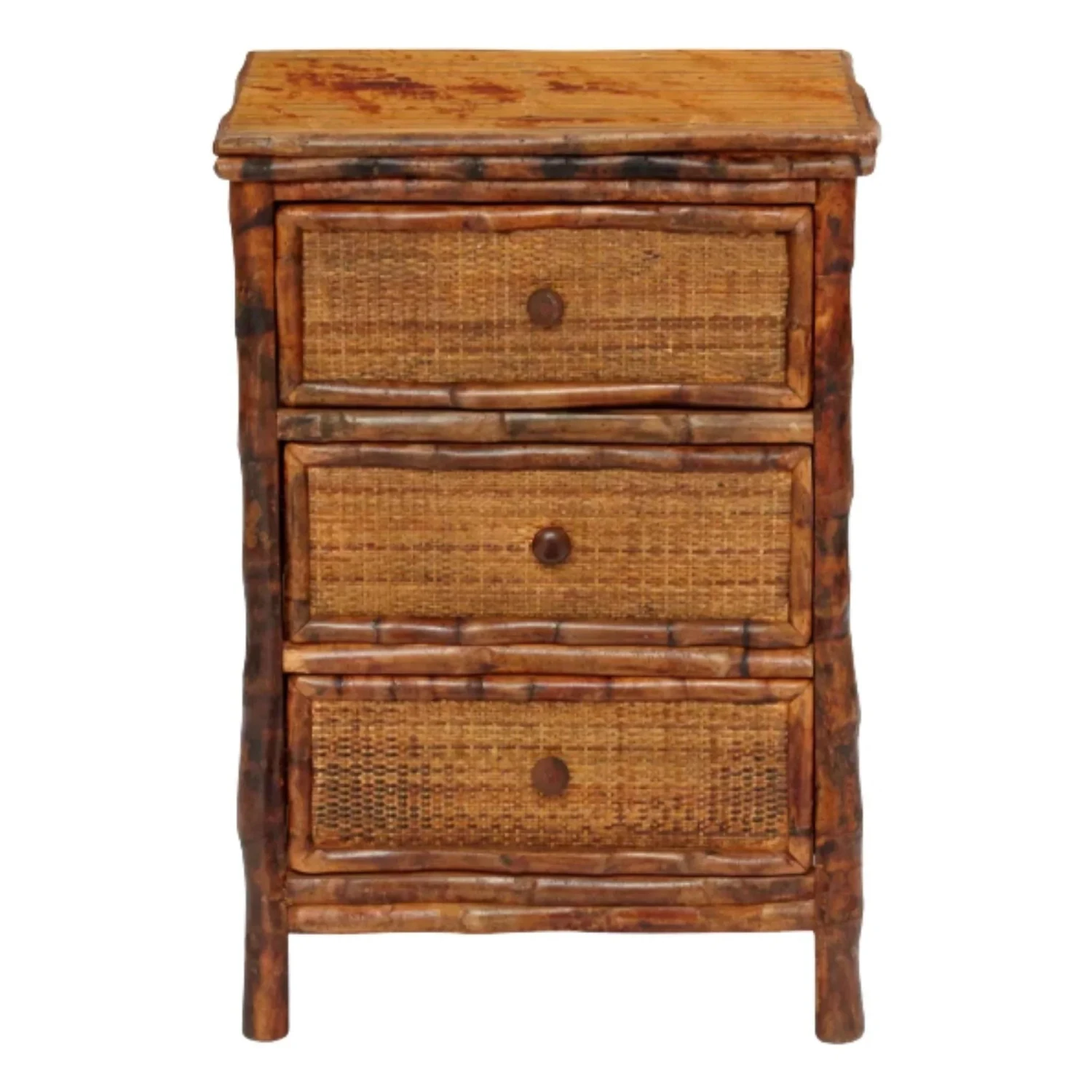 Dress up your bedroom with this three drawer nightstand with woven drawer fronts.