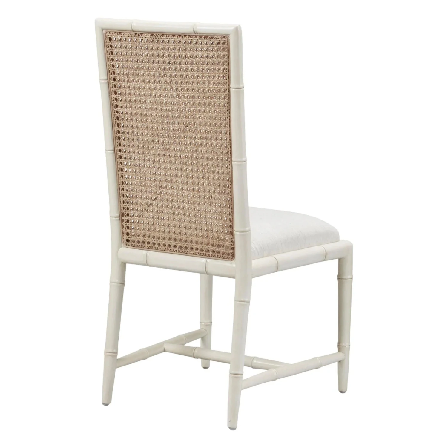 Available in cream, this charming side chair replicates bamboo with hand-carved mahogany. The back is made comfy with double-sided hand caning, and the slip seat is covered in raw silk. The refined lines and scale make this a perfect choice for so many interiors.