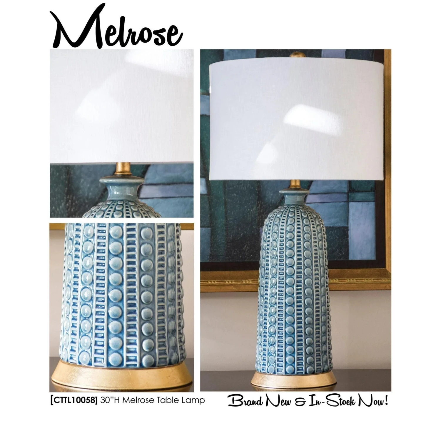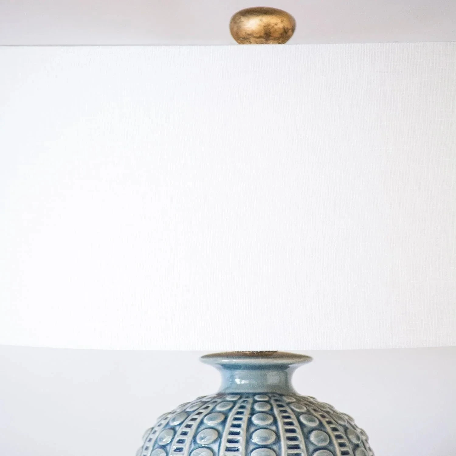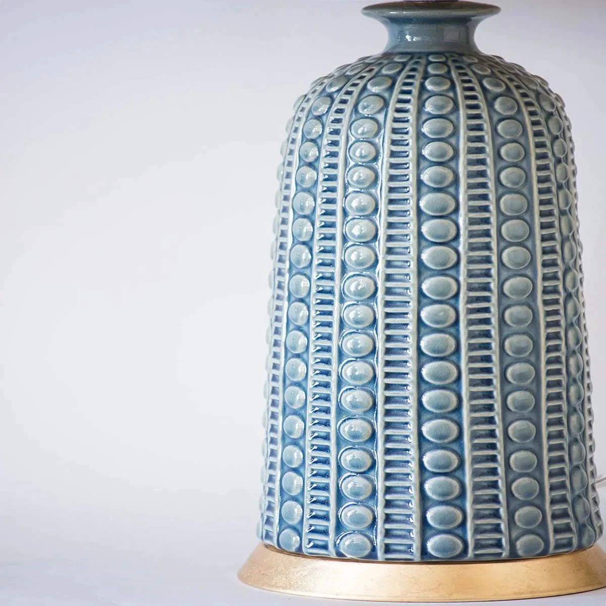 A shapely lamp, it’s sure to turn heads. This tapered ceramic urn features a stunning varied blue glaze. Base only.