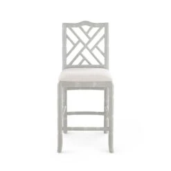 Jardin Eggshell White Faux Bamboo Fretwork Chippendale Counter Stool