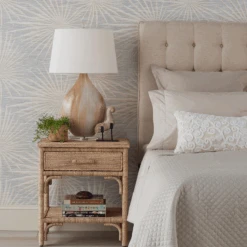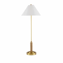 Made from turned wood, the Mitford Floor Lamp has a classic profile that was inspired by a traditional column design. Tom Caldwell envisioned the tan floor lamp with its refined Italian feel. By topping the thin floor lamp with a knife-pleated bone linen shade, he echoed the delineations in the wood lamp’s body and made a wonderfully textural accent piece for an interior.