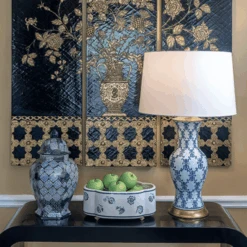 Blue & White Porcelain Temple Jar Lamp With Matching Porcelain Base