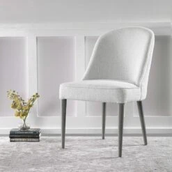 Set Of 2 Modern TexturedOff-White Upholstered Armless Dining Chairs