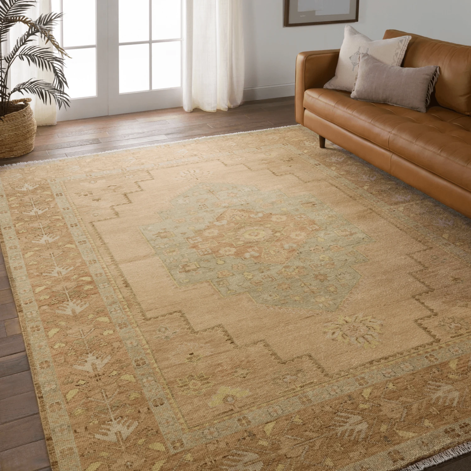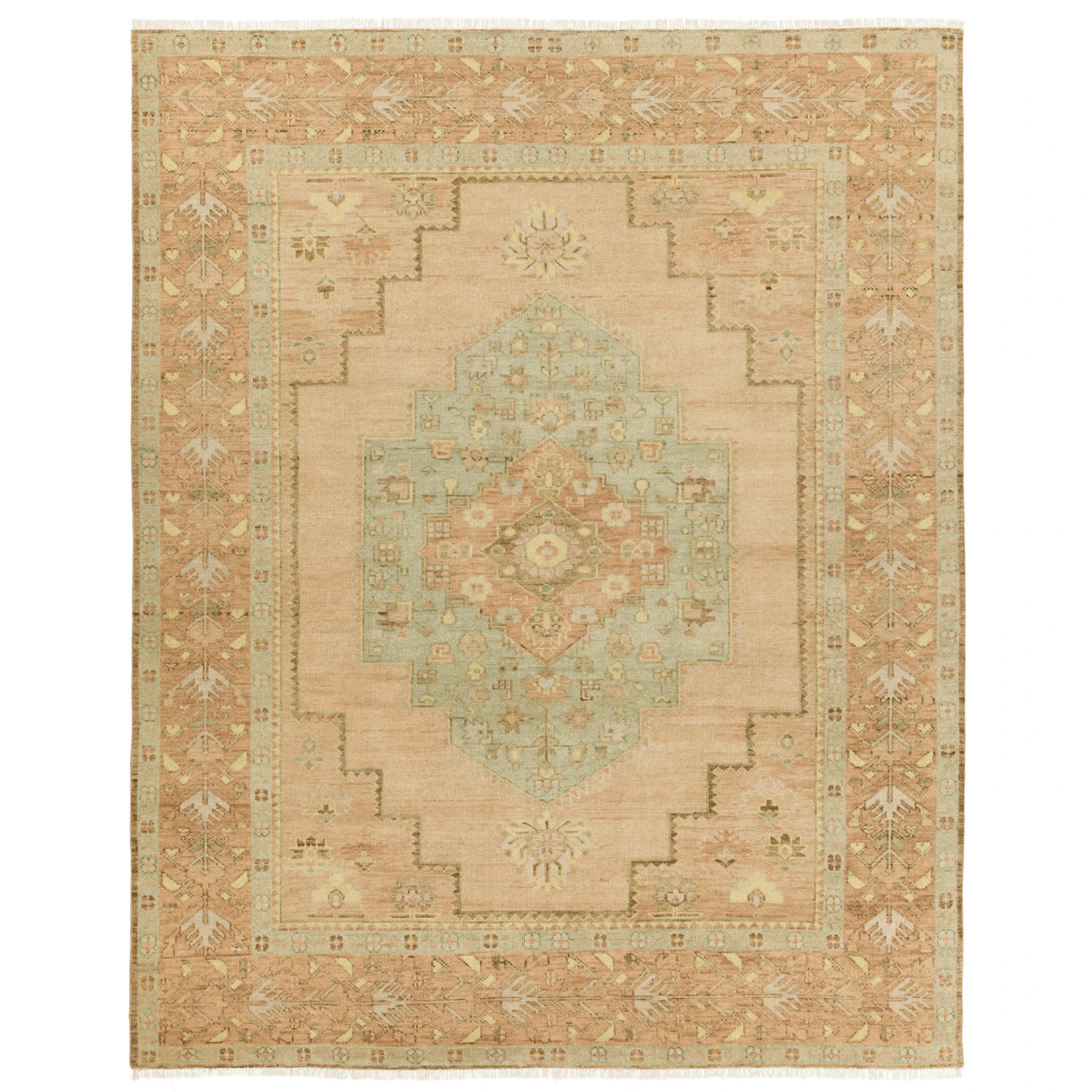 This eye-catching area rug features Turkish-inspired designs that emulate the unique bazaar finds overseas. Constructed from 100% wool and handnotted for quality and durability. This beautiful rug features a medallion and intricate border in hues of tan, sage, gray, and beige. The low pile is easy-to-clean accent and holds up well in both high and low traffic areas. Click images for greater detail.