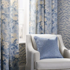 Brunschwig & Fils Ivory & Blue Horseshoe Bay Print Decorative Fabric
