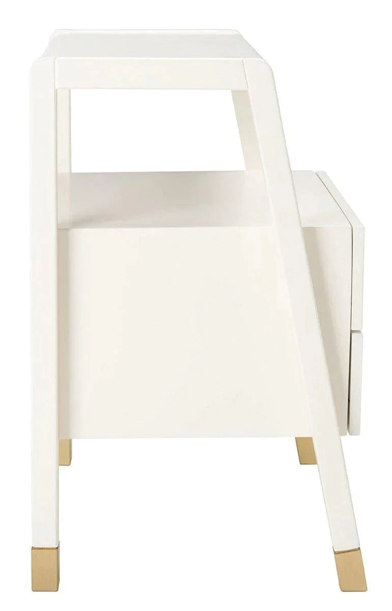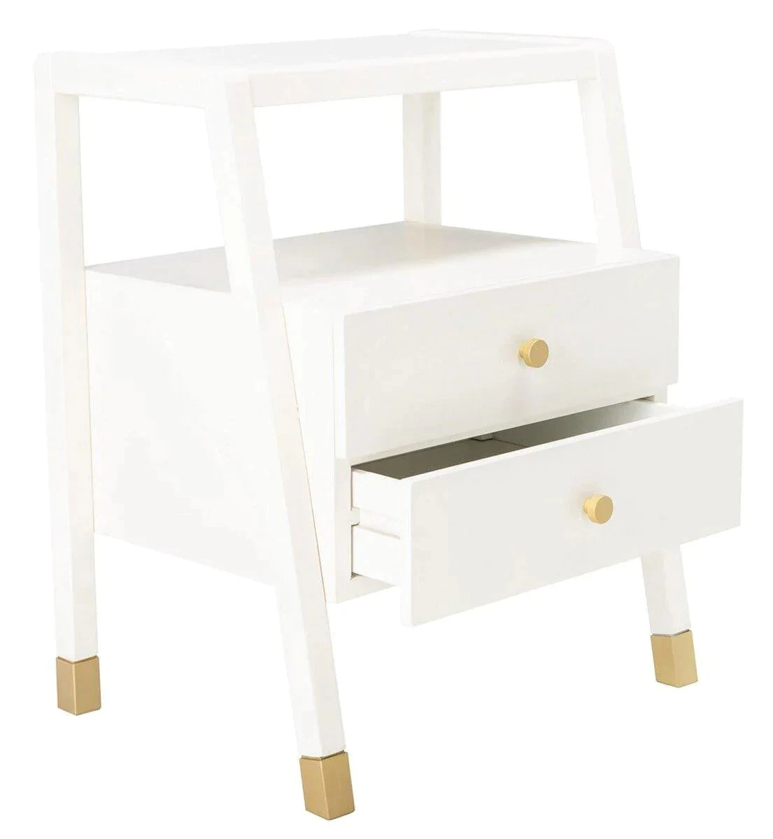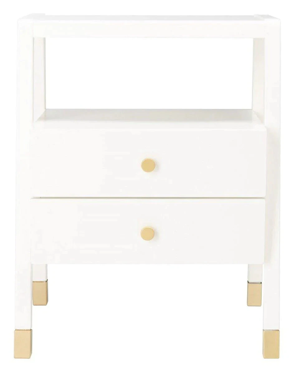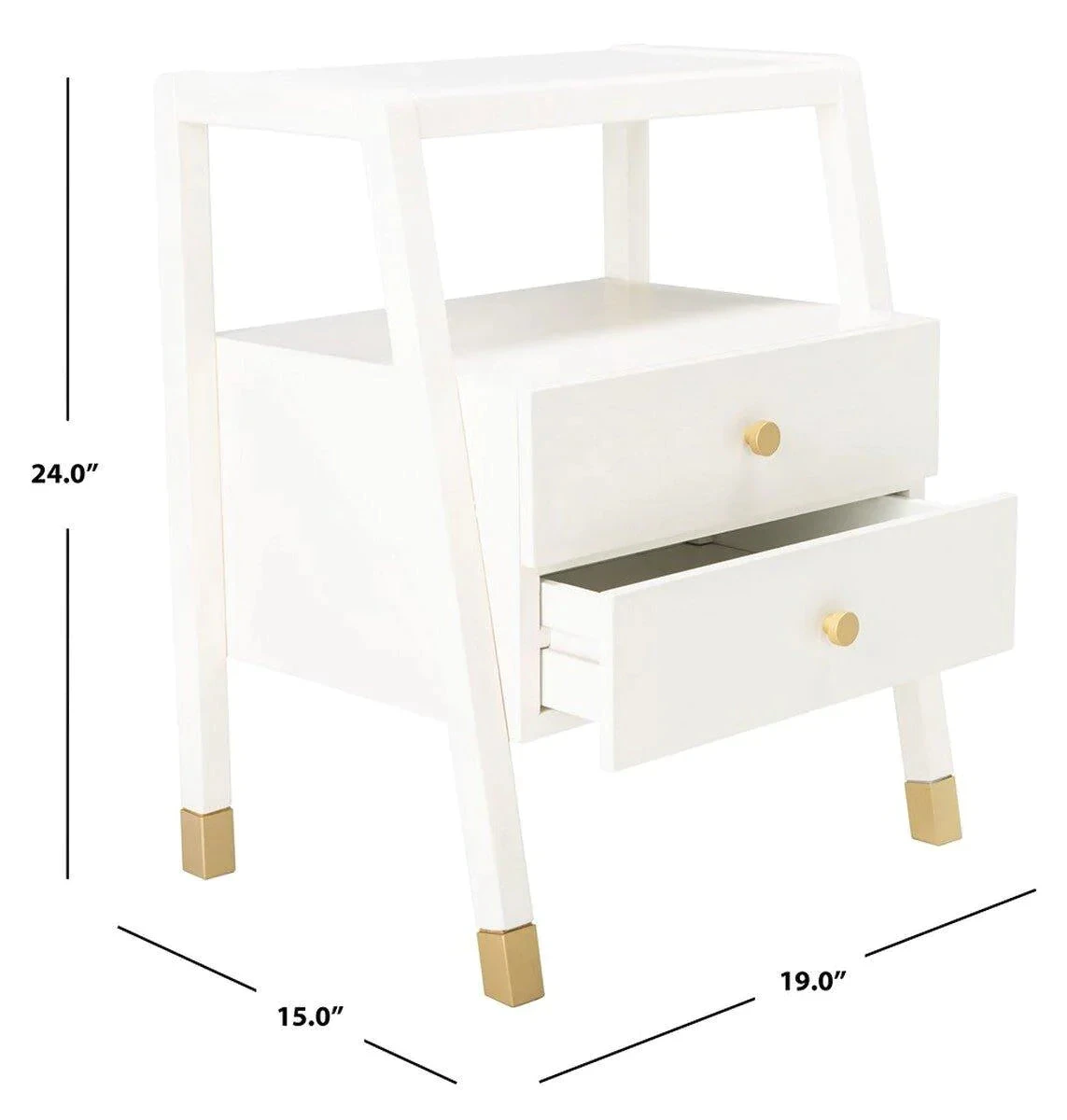Safavieh White Two Drawer One Shelf Side Table With Gold Accents