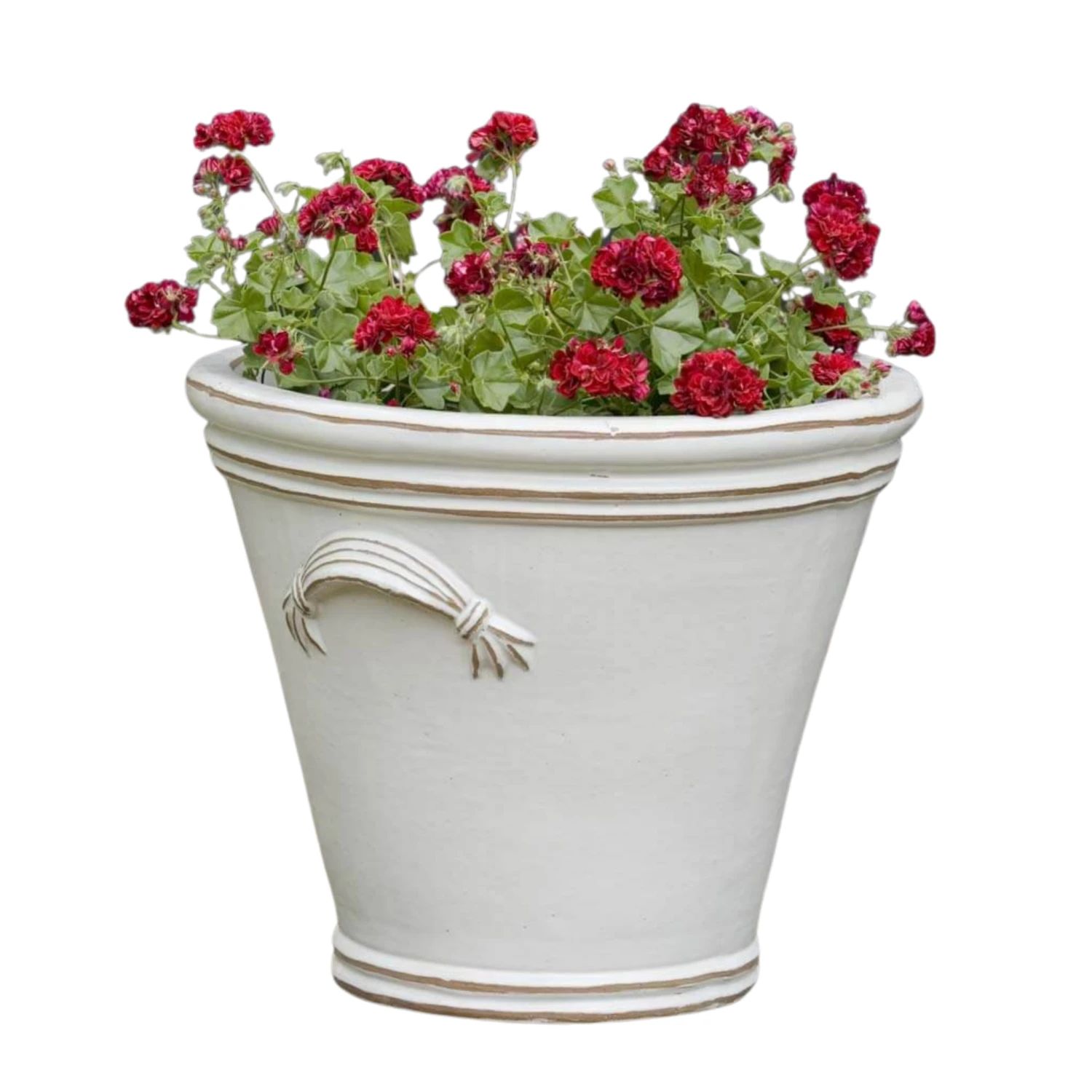 Create a timeless garden display with the Set of Three Fluted Handle Planters in Antique White, a beautifully crafted trio that blends classic elegance with rustic charm. Featuring gracefully fluted detailing and decorative handles, these cast stone planters offer a refined yet weathered look that enhances any outdoor setting. Their varying sizes provide versatility for arranging lush greenery, vibrant flowers, or sculptural topiaries, making them perfect for patios, garden pathways, or entryways. Designed for durability, these planters withstand the elements while adding a sophisticated touch to any landscape. A stunning and functional addition to any home or garden.