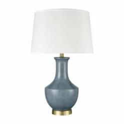 Light Blue & White Porcelain Swirl Jar Table Lamp With Gold Leaf Base