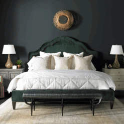 Arched Paneled Headboard with Baton Posts and Paneled Low Footboard with Baton Posts. Cappings are Included for High-Low / Low-Low